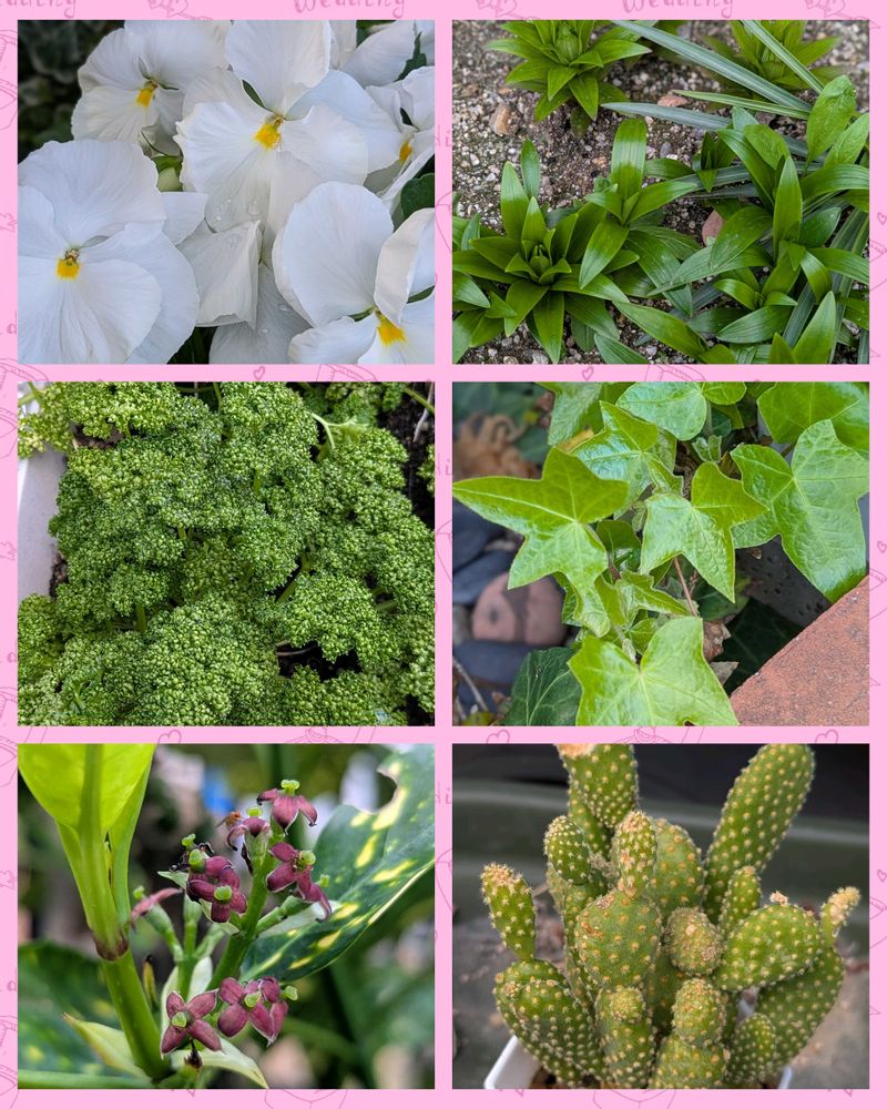 右上から透かし百合の芽・セイヨウキズタ(アイビー)・キンエボシ