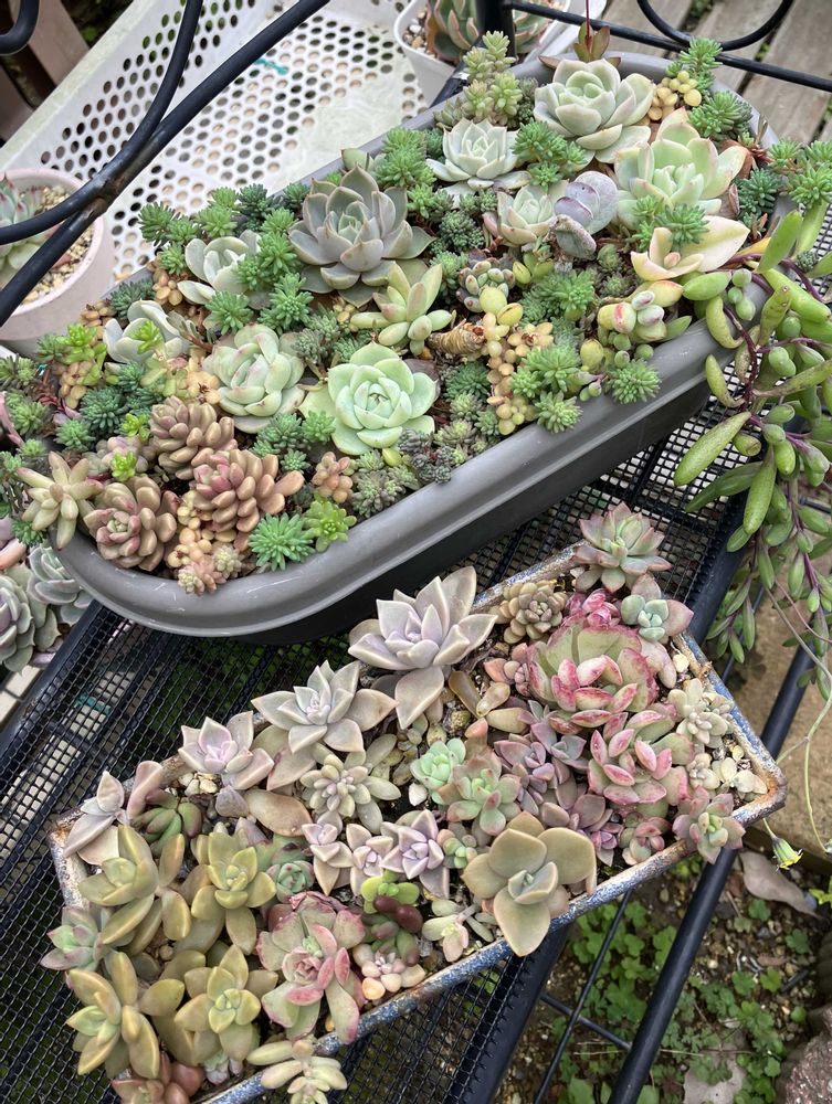 いつも、どの多肉鉢も盛り盛りになって素敵だなと見せてもらってます。愛❤️かなあ。👏👏👏