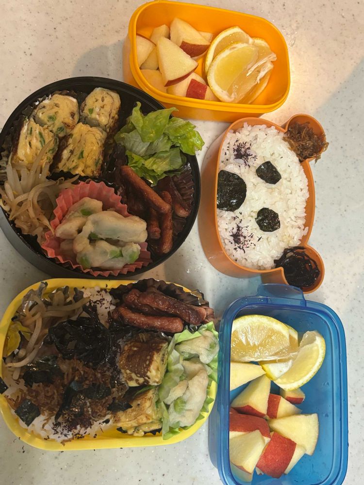 ③孫と娘へのお弁当🍱ウインナーちょい焦げた😁❣️