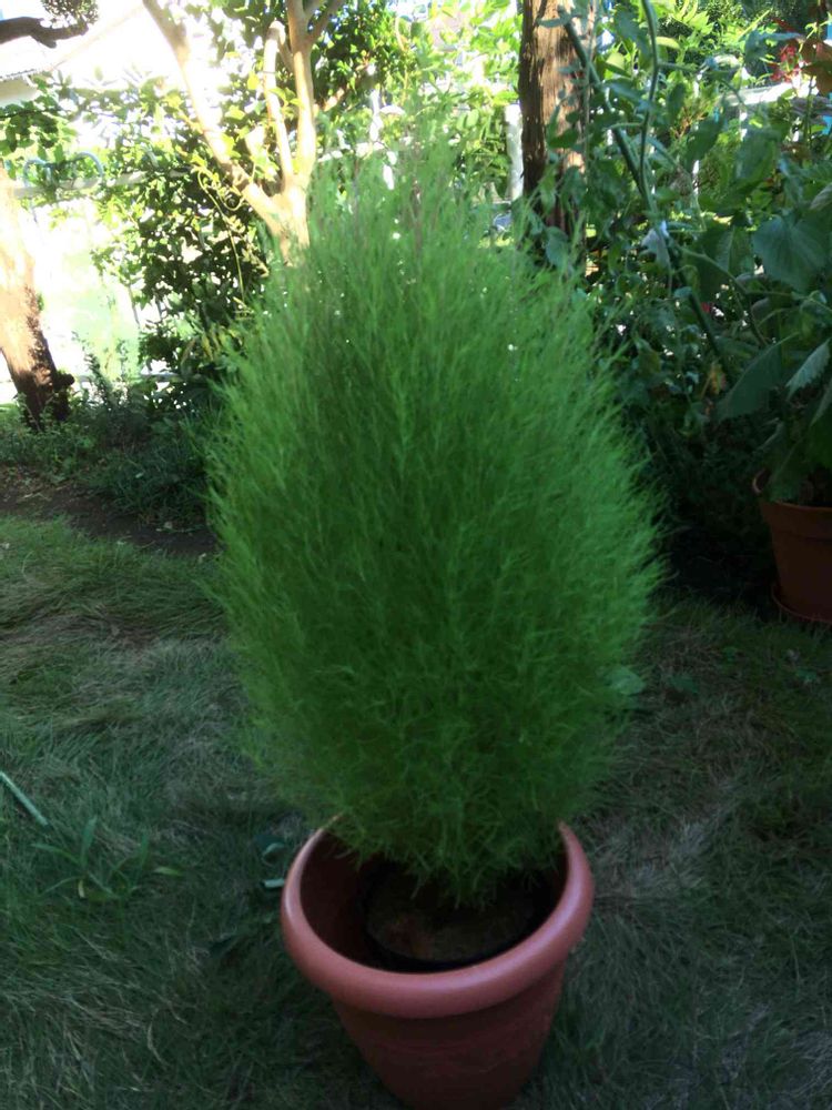 多分ですが、コキアって鉢だとpicの様に長細くなる傾向があると思います🌲ウチは鉢と地植えとありますが鉢がやはり長細くなっています。HC等で販売しているポットのコキアも大体長細くなっています🌲地植えのコキアで丸🌳以外見た事ないので地植えをお勧めしますが、今の時期からだと丸くなるか分かりません😆秋に紅葉🍁が終わり暫くすると種が出来るので、適当な場所にパンパンして種を落とすと来年🌱が出ますよ🌳😄 私の経験上の事なので違うかもしれません😅