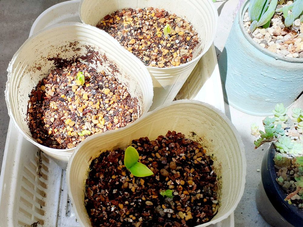 葉挿し沢山されてるですね。材料が、一杯有るので植え放題ですね。場所が有るから羨ましい、狭いながらも工夫して楽しんでます。💕
