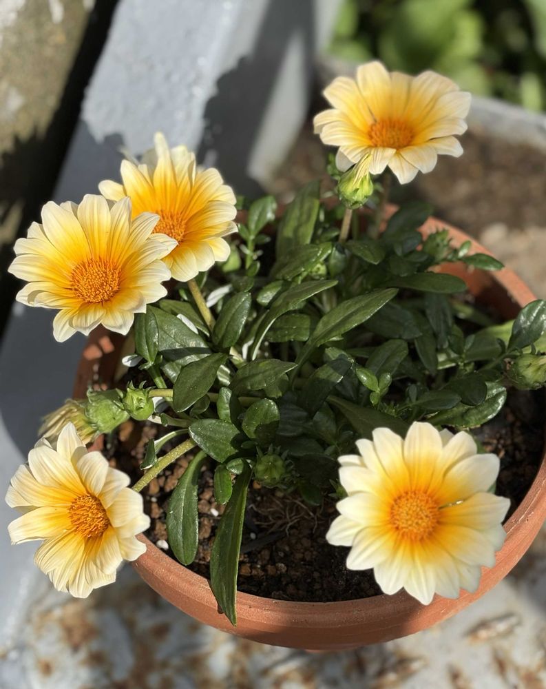 PWのガザニア ビースト『カナリア スマイル』💛柔らかな黄色に目を引くオレンジ色が可愛いです🌼