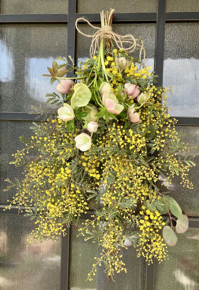 ミモザが咲き始めたのでスワッグ作ってみました