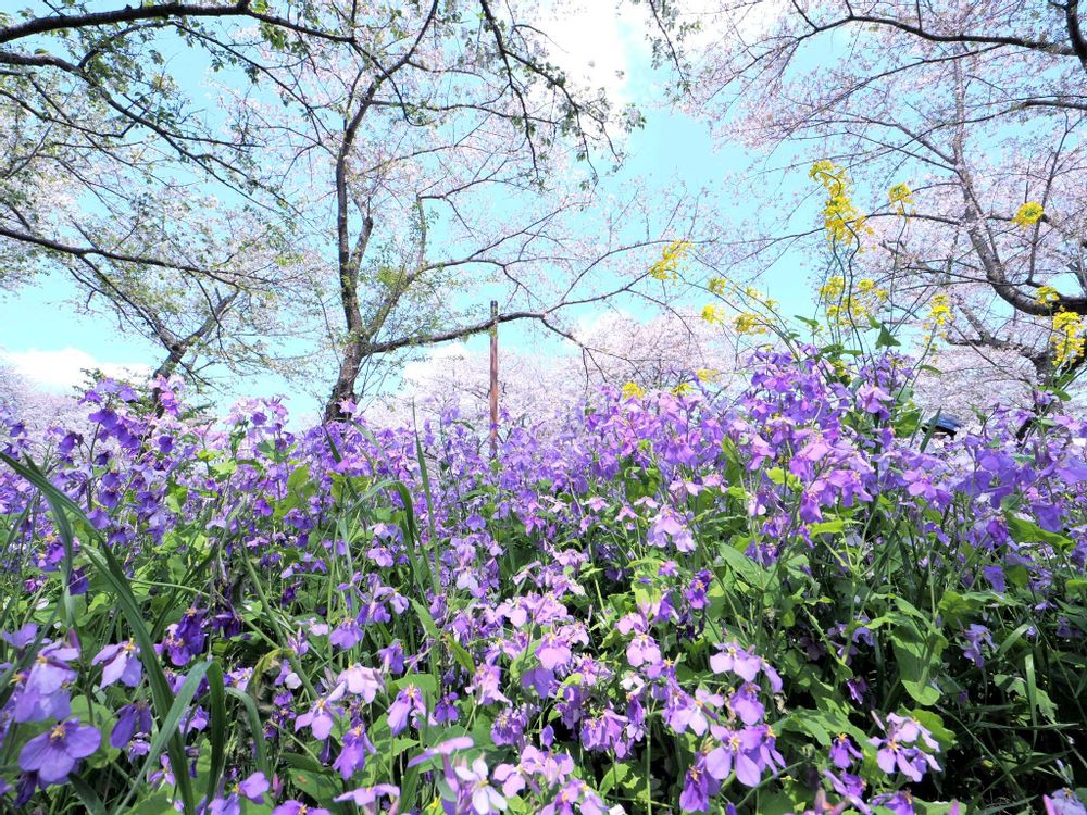 桜が満開でムラサキハナナやカンザキナノハナとのコラボが素晴らしかったです🌸🌸