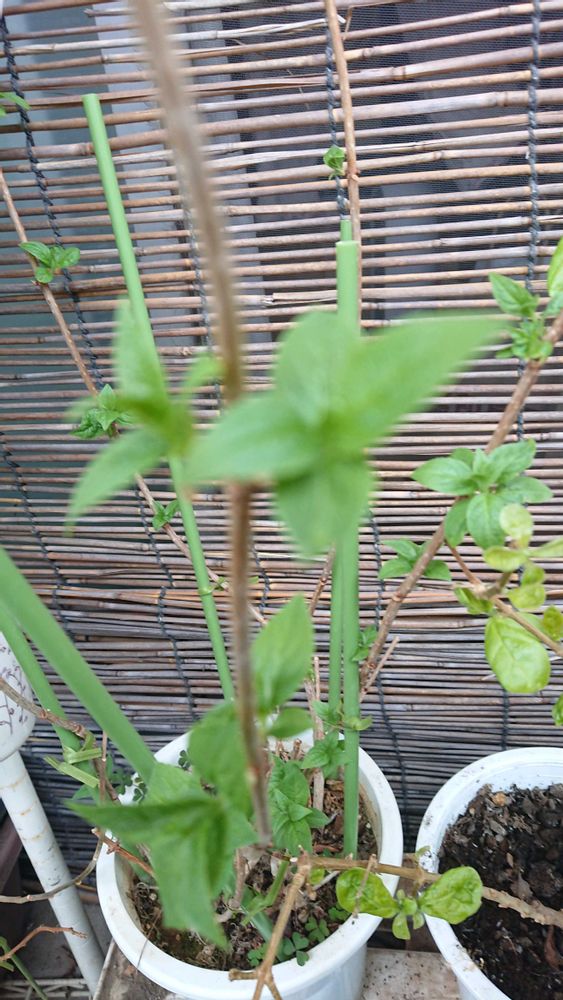 花盛りのベランダで、花と同じくらい目を引くのが新芽❗