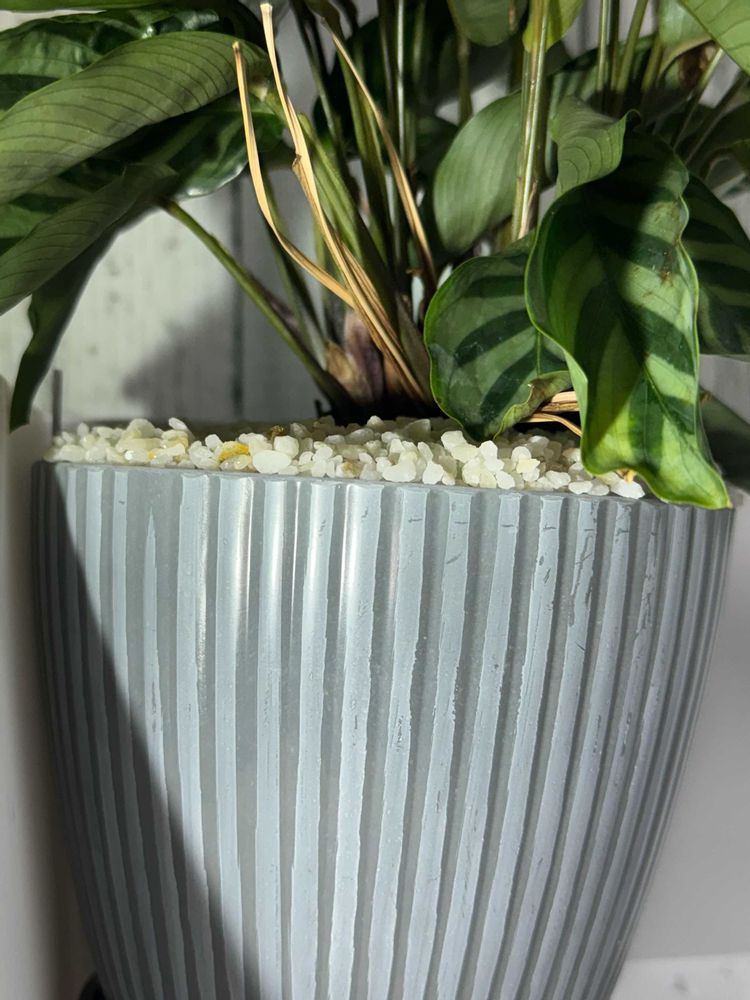 何年か前ダイソーで買ったカラテア・フレディですが…鉢土の表面が盛り上がって化粧砂が溢れてます。