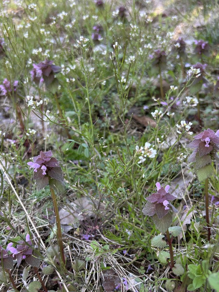 ミチタネツケバナとヒメオドリコソウがコラボで広がってて、これはこれで良き〜