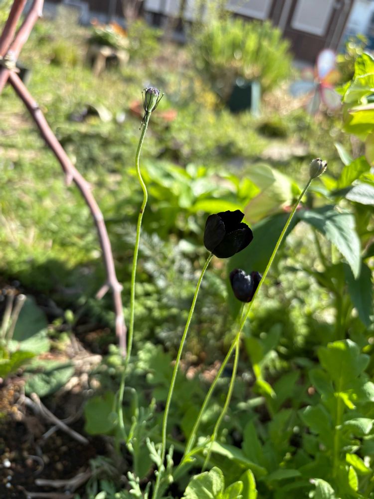 ちっちさんから頂いた種から、咲きました✨真っ黒でかっこいい🖤