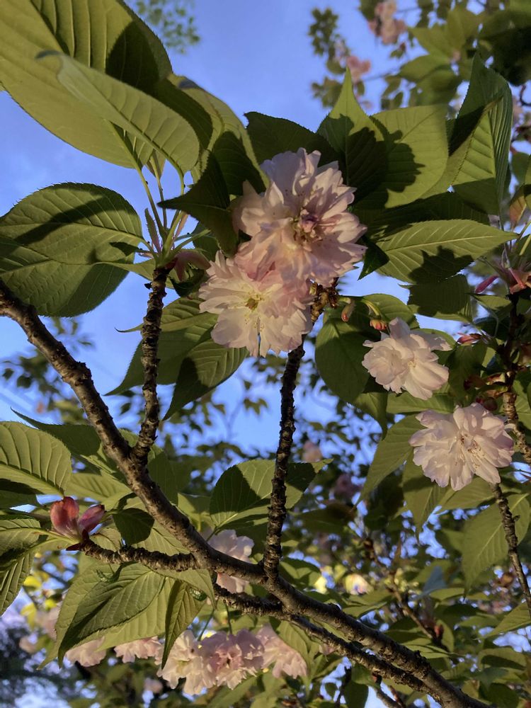 オオムラザクラよりも花びらの数が少なく、色も淡い、オオムラザクラが可愛いと形容するならば、クシマザクラは楚々とした感じ4枚目はオオムラザクラかクシマザクラかわかりません😞