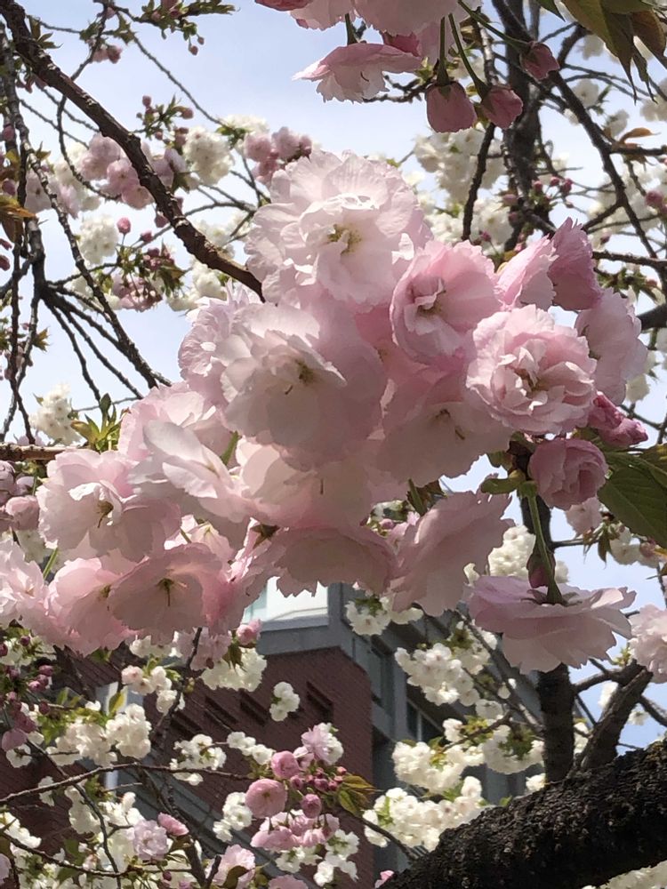 大阪造幣局の「桜の通り抜け」は4/11(金)に終わりましたが、今年の八重桜のお花は遅く、まだまだ咲いています。🌸🌞✌️