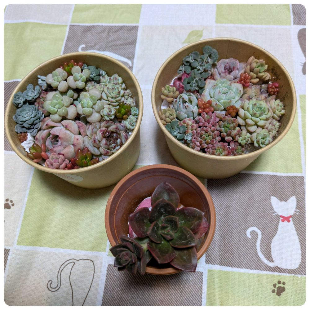 さーん、ええええー!?参考になるとこありますかぁ!?まぁ最初はこんなもんでいいのよ!!の参考にはなるかもーー落ち着くと空いてきちゃうんですよぉーーそしたらセダムとかで盛り上げるけどーー💦テヘペロッ〜〜