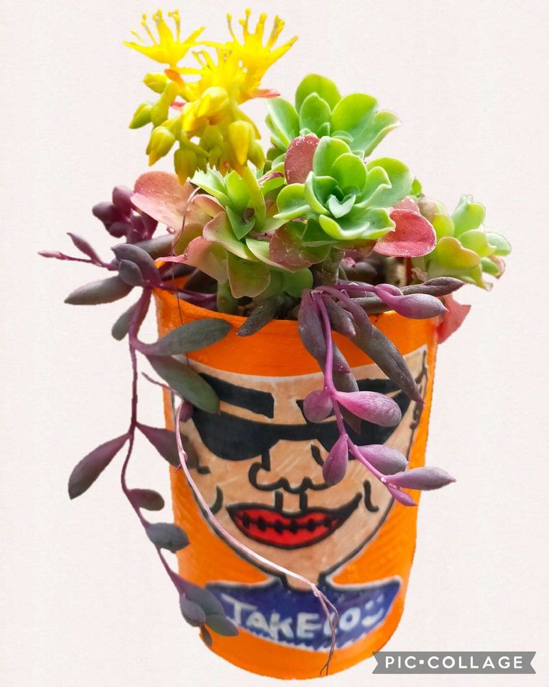 派手な缶には派手な多肉でꉂ🤣𐤔🤣🤣🎶