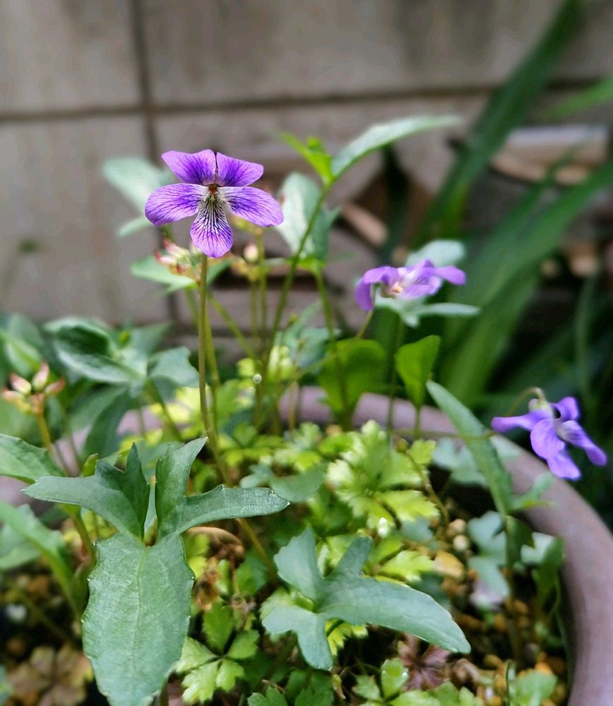 スミレ科。おうち園芸、バイカオウレンの鉢に突如現れた。北米原産の帰化植物。鍬形の葉っぱが特徴。