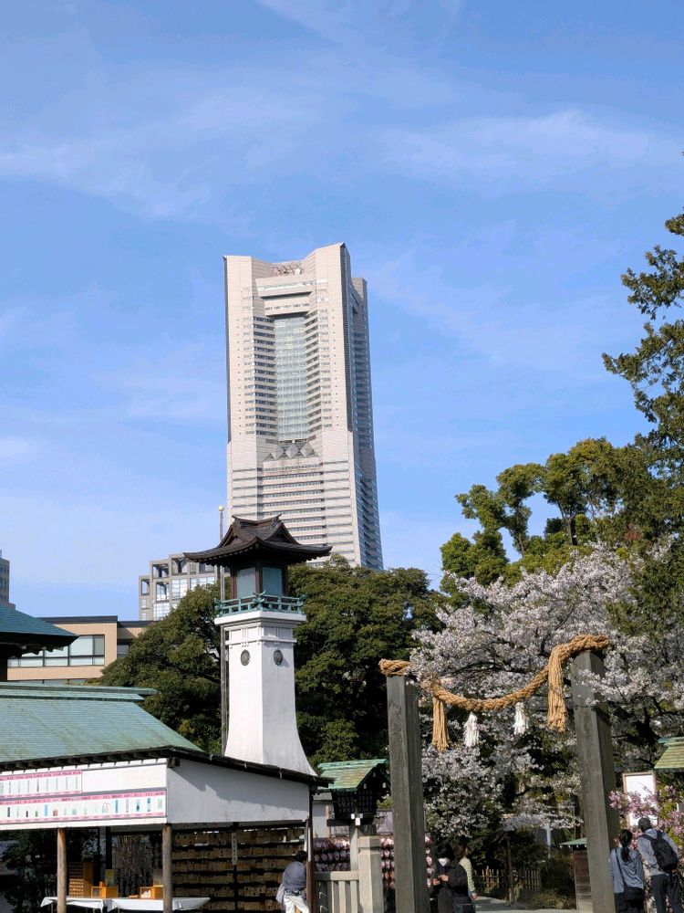 1,2枚目 ランドマークタワーが照四海の搭の後ろに見えました。昔は、灯台の役目もしていたらしいです。右は、大注連柱。