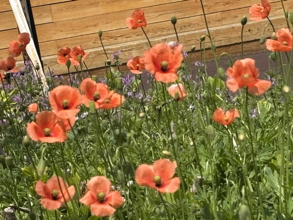 甲子園駅の花壇、元々何かが植えられているのですが、今はホトケノザとヤエムグラとナガミヒナゲシがひしめいてました😆💦