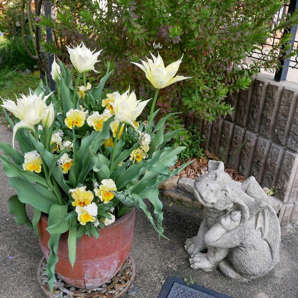 庭,フリル咲きパンジー シェルブリエ,チューリップ・なごり雪の投稿画像