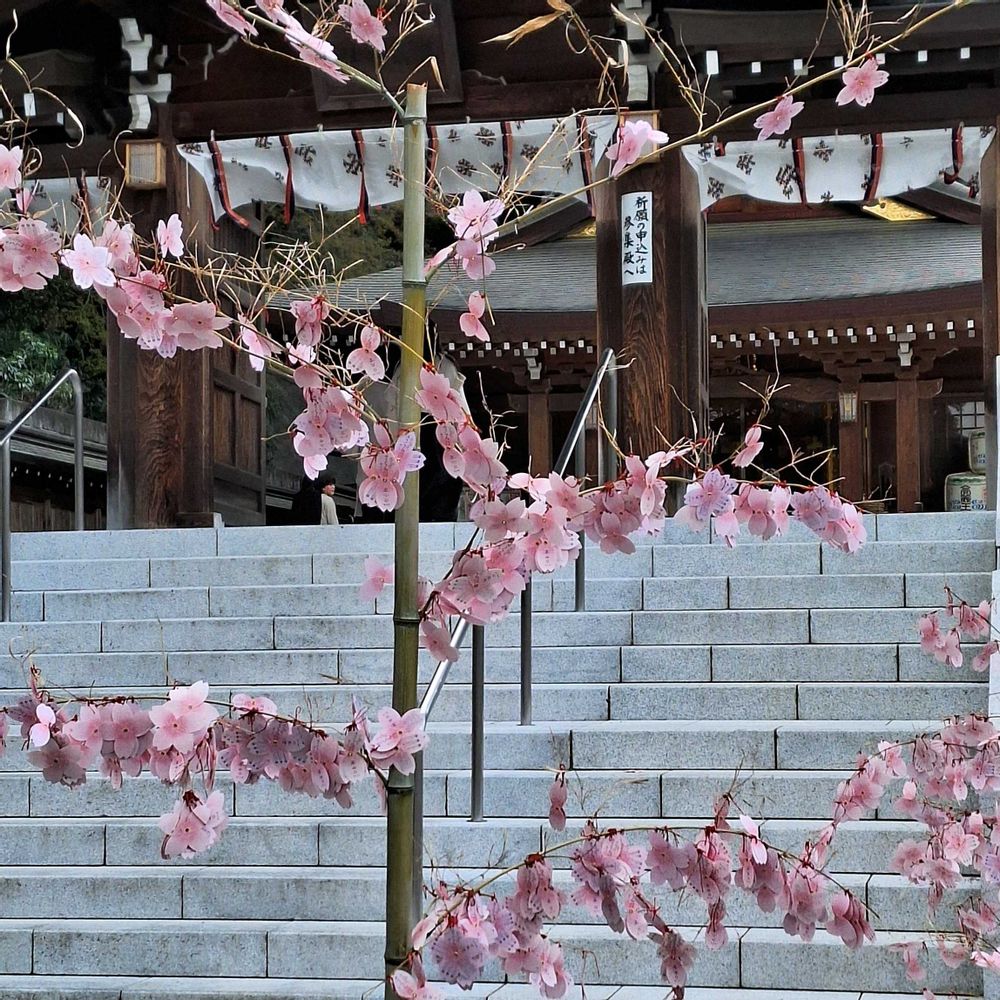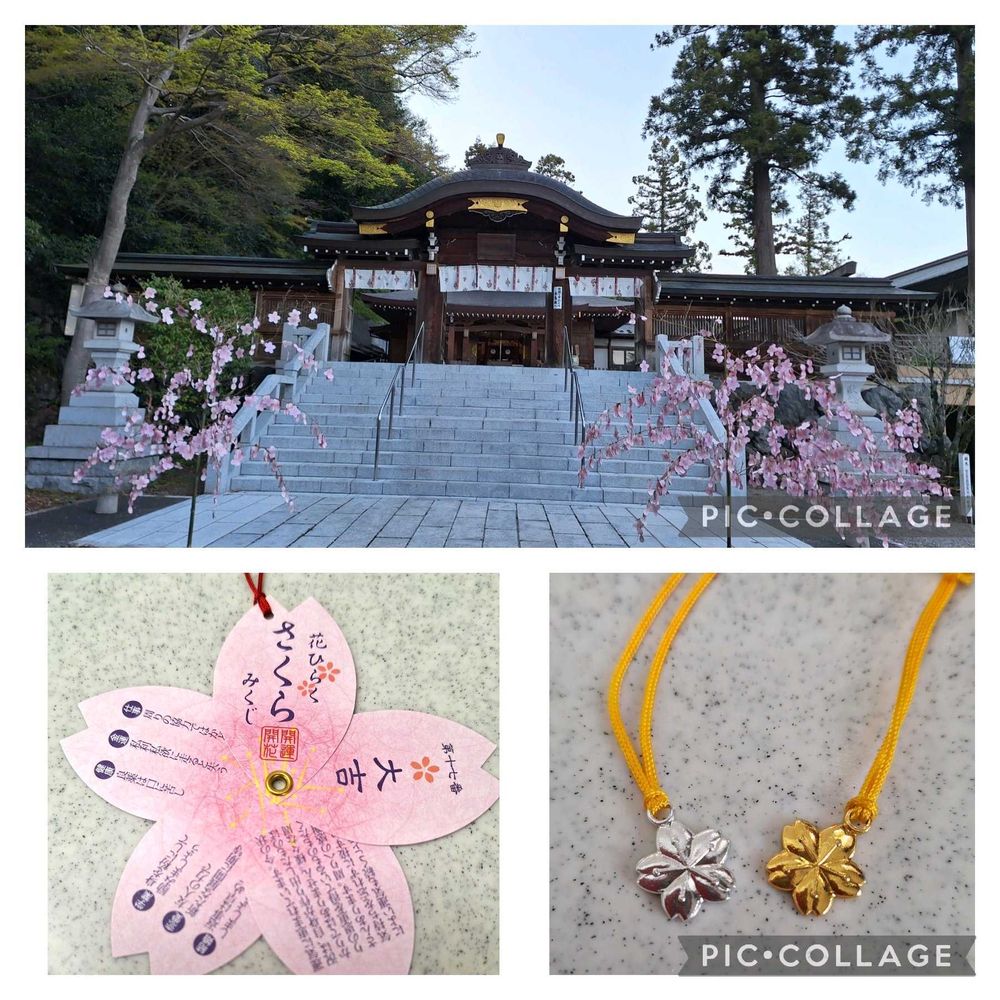 石段の両脇はその🌸おみくじがしばってあります。桜の木のようで綺麗です✨