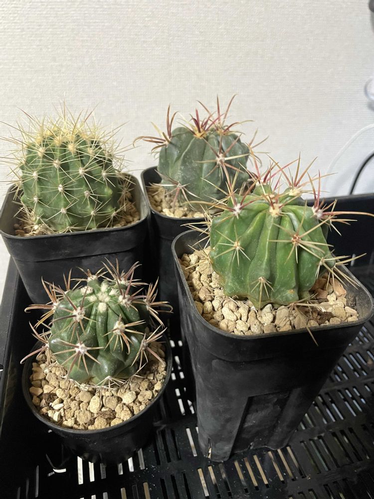 土リフレッシュという目的でフェロカクタスたちを植え替え。