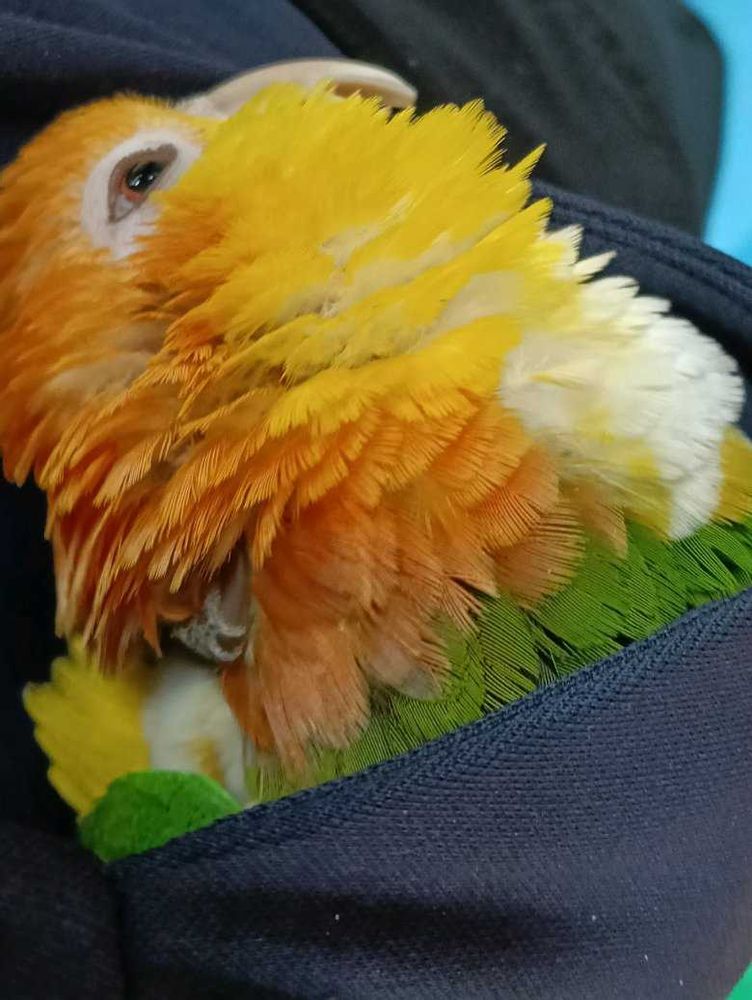 2枚目のインコちゃんは、何か袋?ポケット?に入っているのかしら???😂