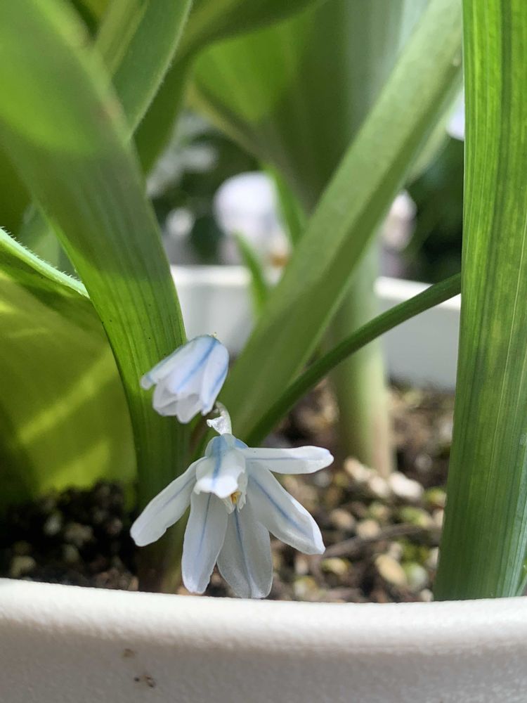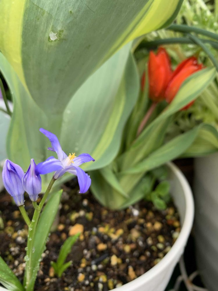その鉢には青いチオノドクサとプシュキニアも咲いていました