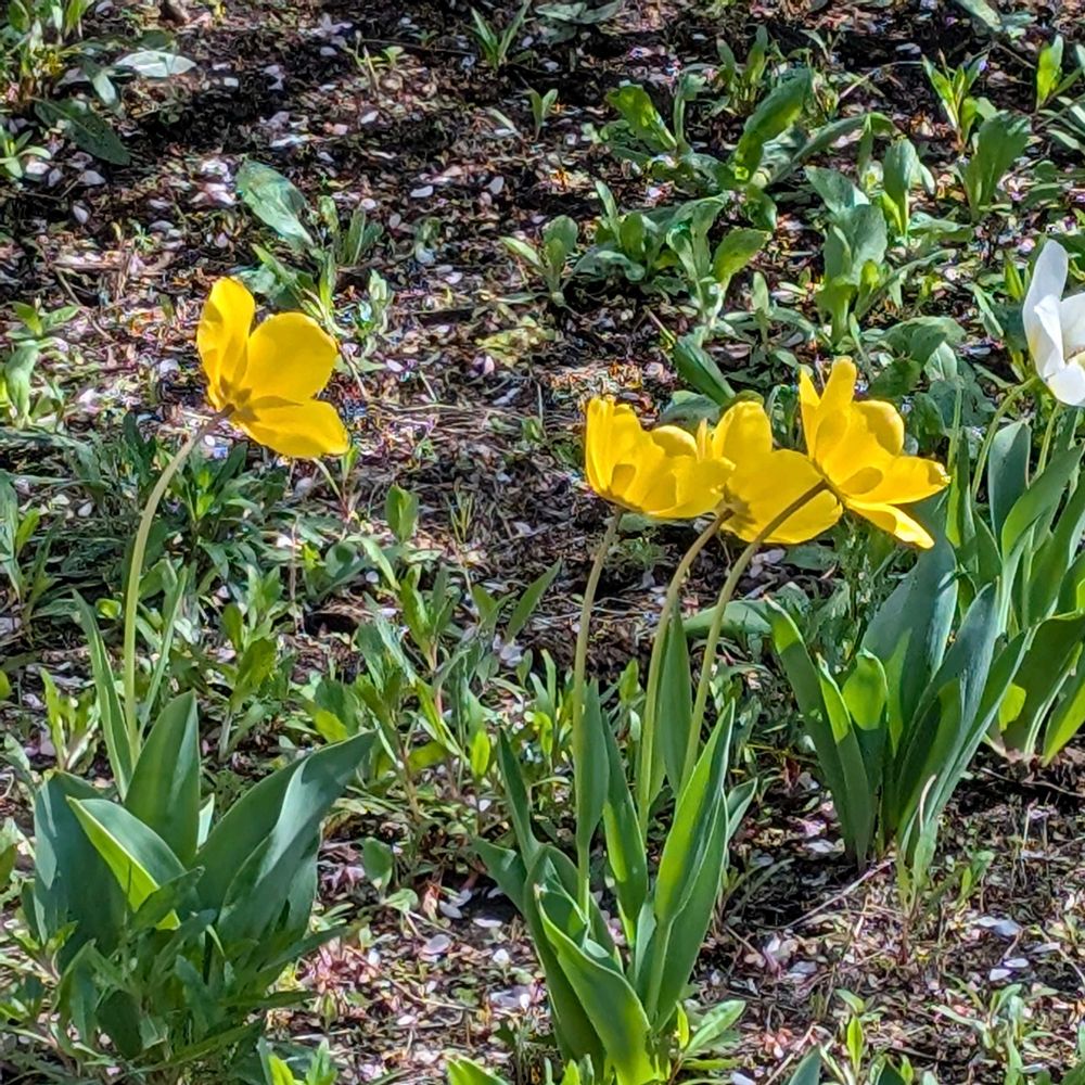 黄色いチューリップも咲いています。