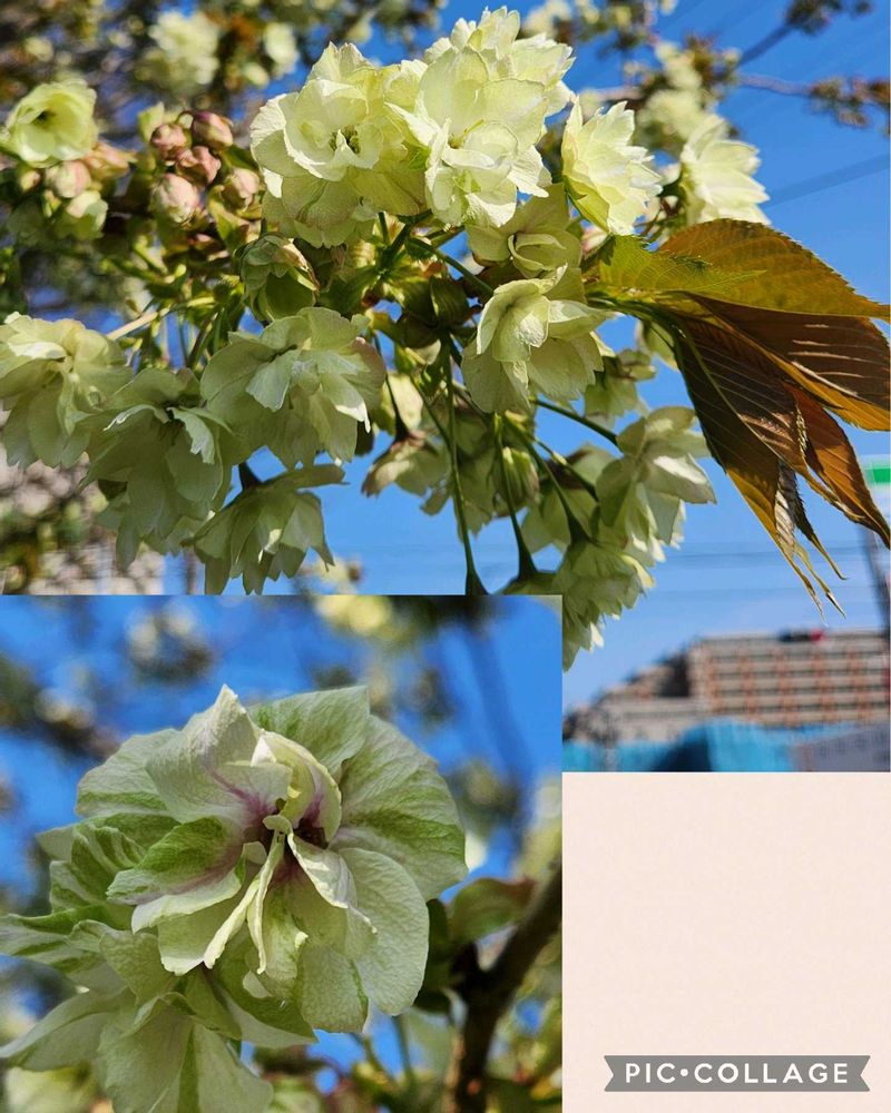 鬱金桜🌸🌿、色変するのですね、初めて見た素敵な桜です👏