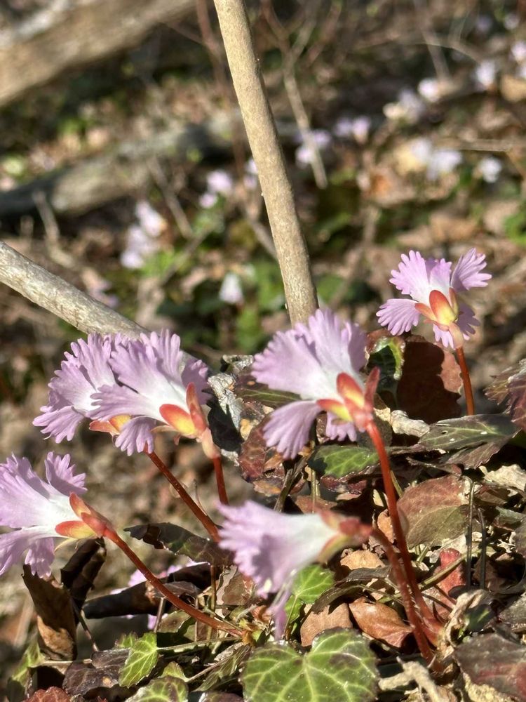 濃い桃色や白っぽいお花もあり斜面一面のイワウチワにワクワク😄