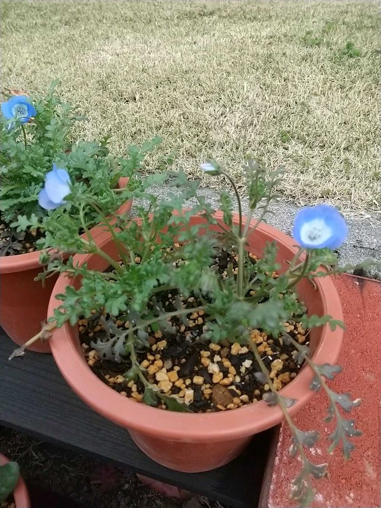 去年から育てていたネモフィラ。ようやく花が咲きました😄