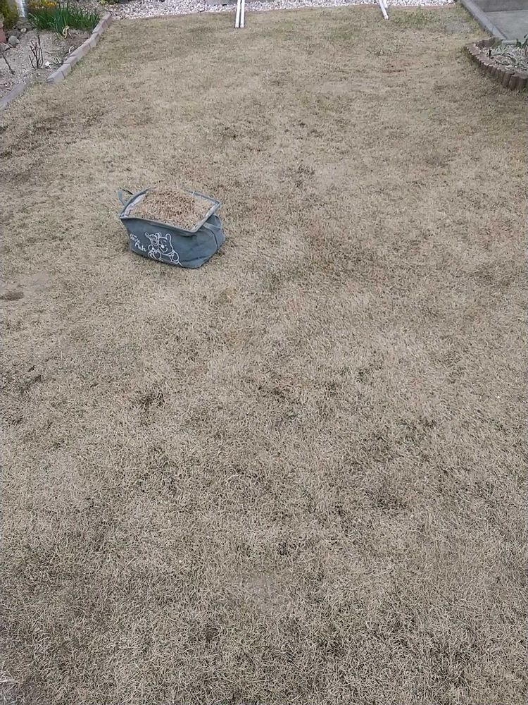 そして枯れ芝の底刈り(1cm)とサッチング。土袋3つぐらい集まった😳さぁ芝の季節の始まりだ!!