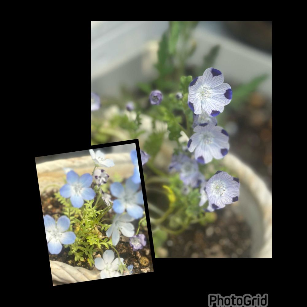 ②こぼれ種から咲いたネモフィラ...