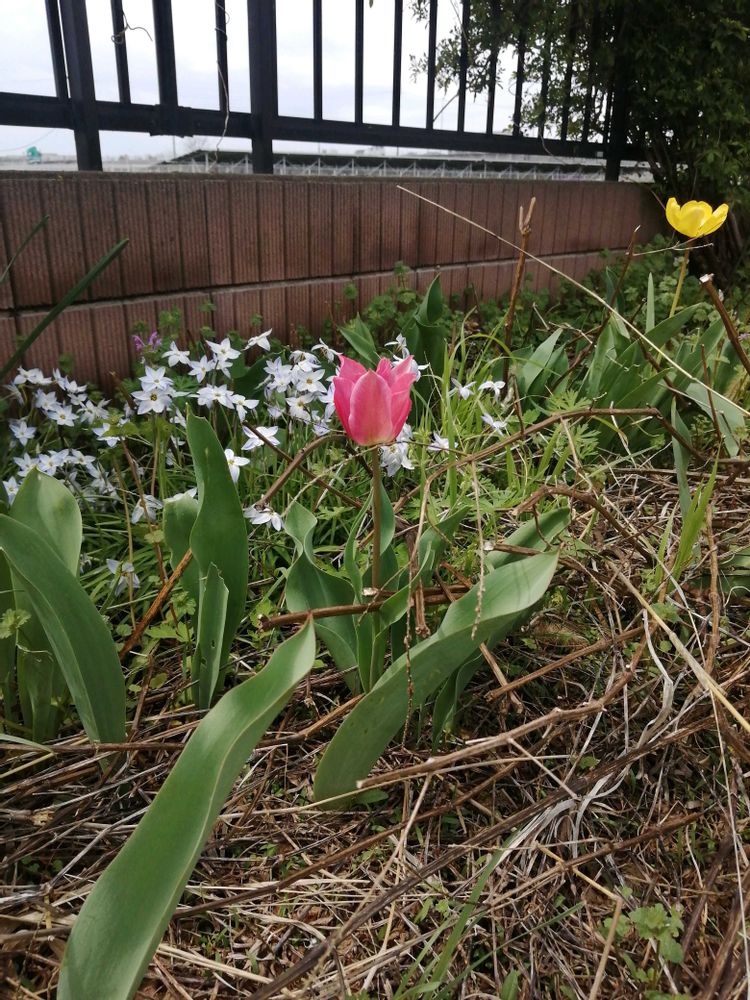 息子が大学に行くのにここを離れる時に一緒に植えたチューリップがことしも咲いた