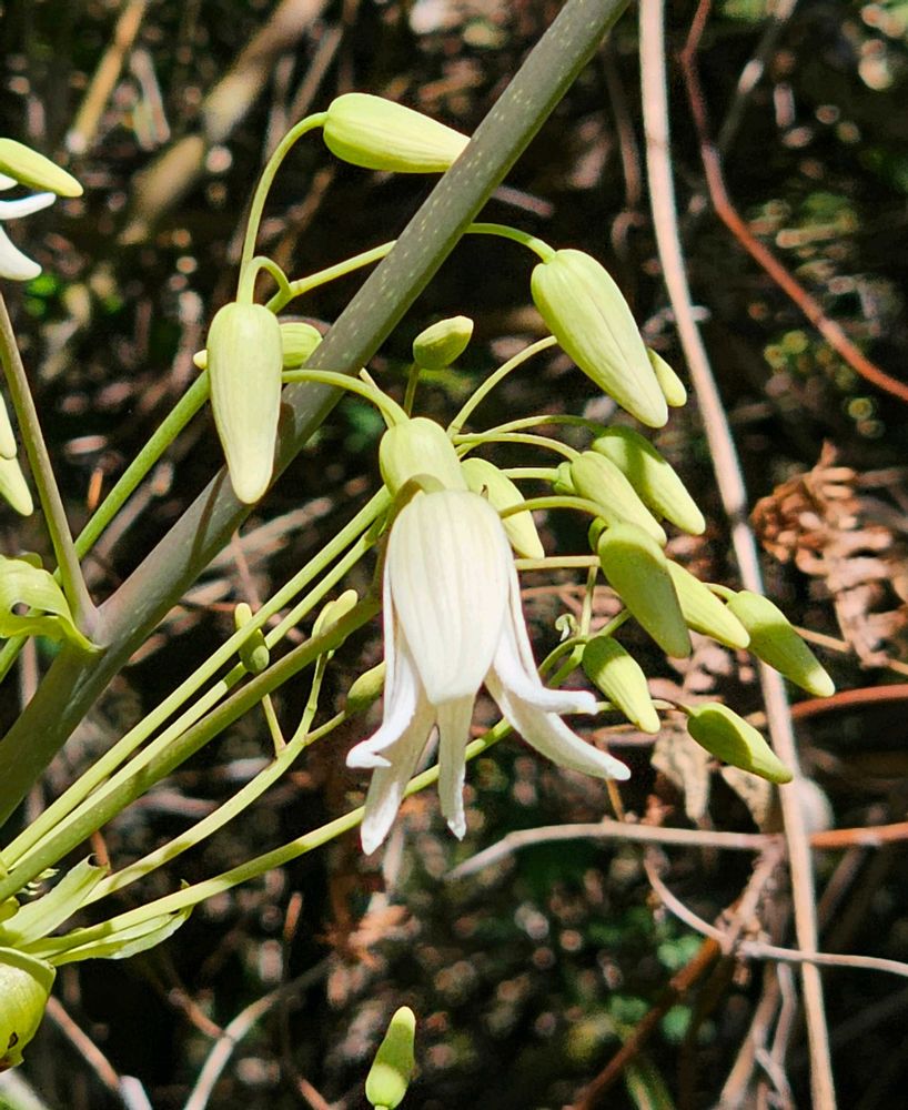 花は下向きに咲き 内側には淡紅紫色の筋があるらしいが 離れていてみえない😁