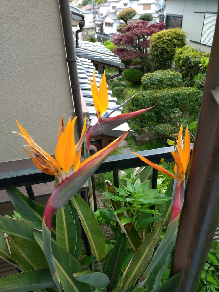 ②③東側の小鉢のストレリチア3本同時に咲きました。💕