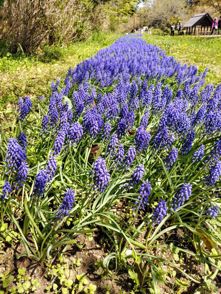 ムスカリが帯のように長〜く植えられていて、それを端から撮りました📷️