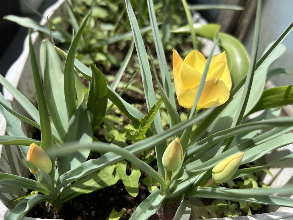 💛黄色💛の🌷ミニチューリップ🌷原種が今年も咲いてくれてました💁🏻♀️