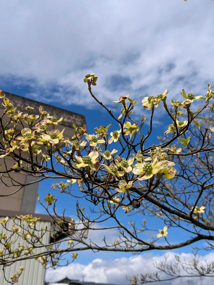 職場の駐車場に植えてあるハナミズキの花が咲きました🤗