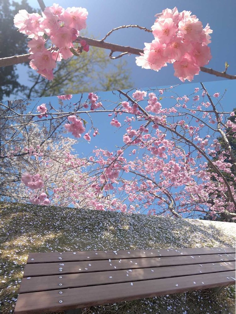 ベンチには先客の花びら💞