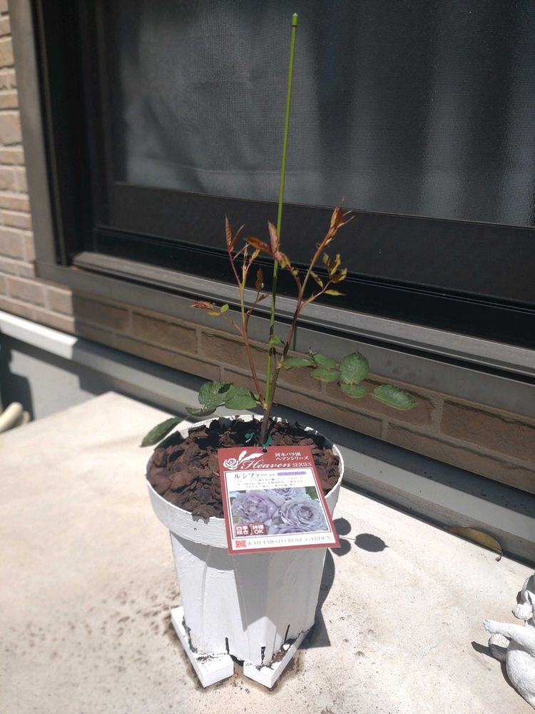 お迎えしようと思った頃には大苗も裸苗も売切れていましたが、どうしてもルシファー様をお迎えしたい、今まで大苗しかお迎えしたことなかったから無謀かもしれないけど新苗も育ててみたいと思いました。