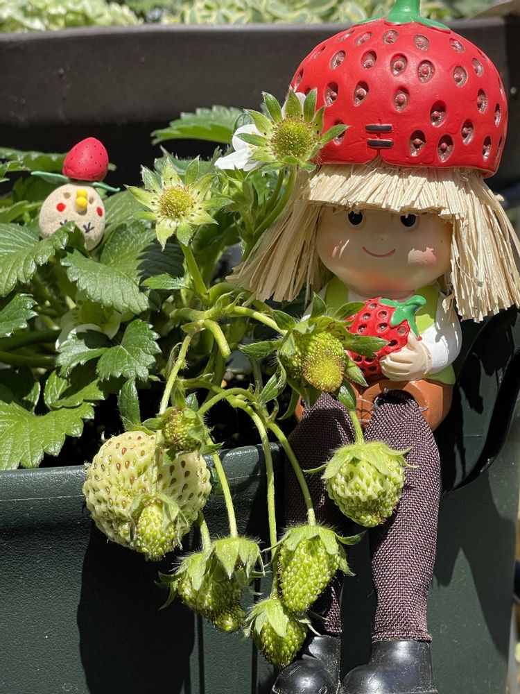 いちごっ娘ちゃんと🍓おぼうぼピータンも熟すの待ってるよん