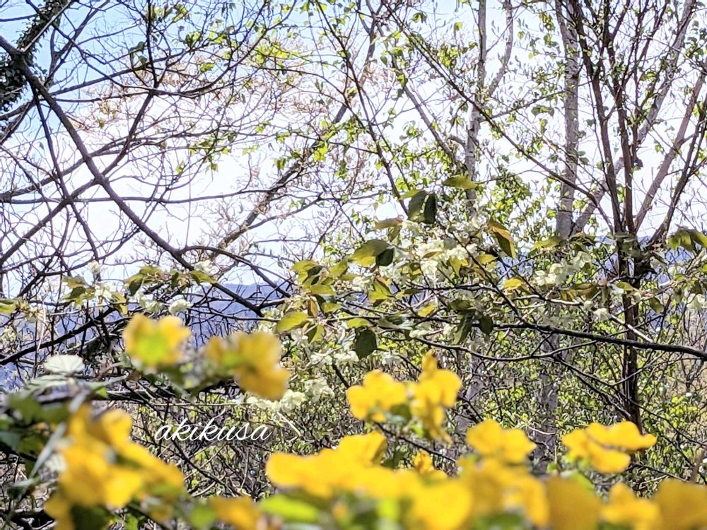 山吹を手前でボケさせ鬱金桜が素敵💚