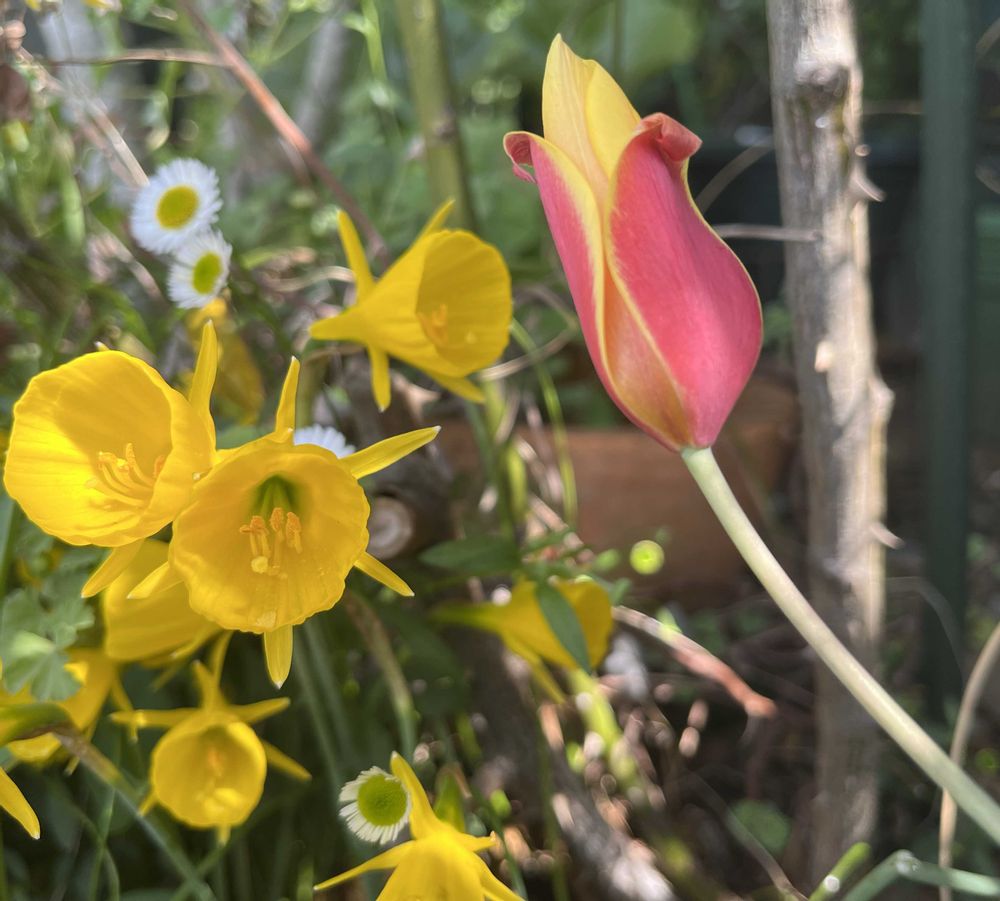 ②地植えの原種チューリップ🌷とペチコートスイセン✨チューリップの年々数が減ってきてる💦