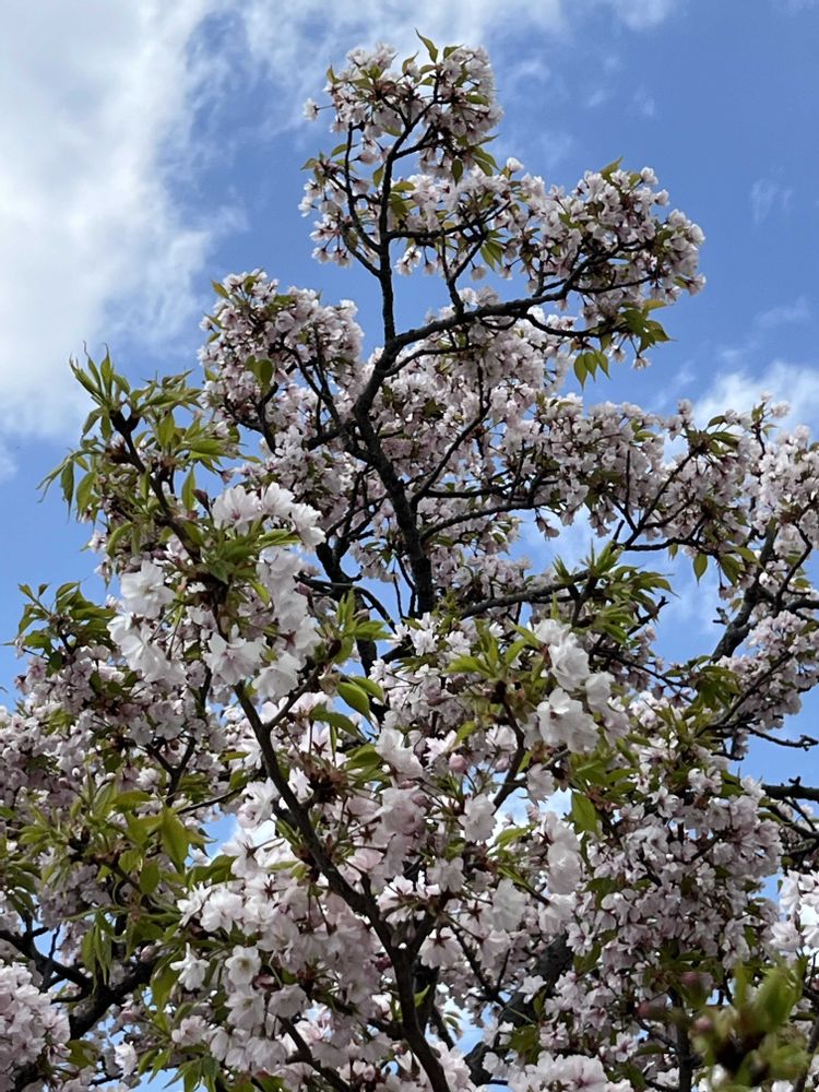 静桜、高さのないこじんまりした木に、小さいお花がヒラヒラとぎっしり咲いています🌸