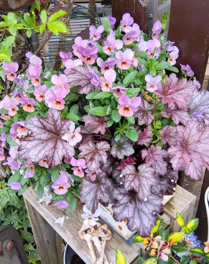 ③ビオラ フィオリーナ オーロラずっとモリモリ咲いています。来年も色違いの子もお迎えしたいです。コスパ🙆