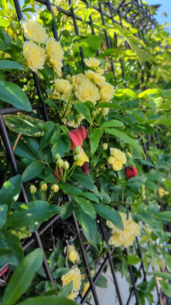 アブチロンの赤と黄色のモッコウバラの組み合わせも素敵ですね(◍•ᴗ•◍)❤