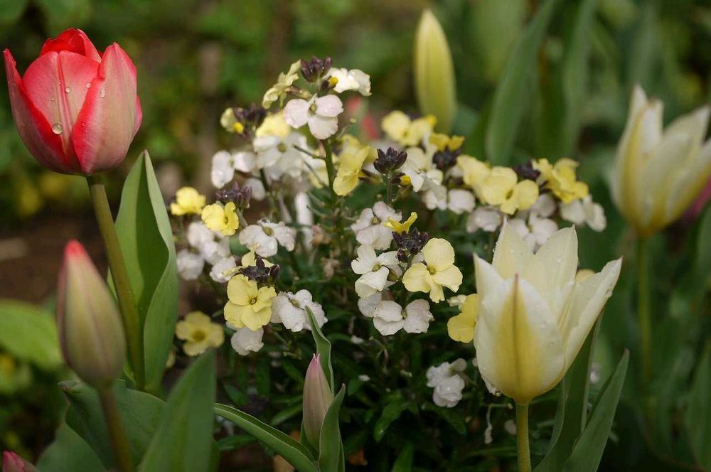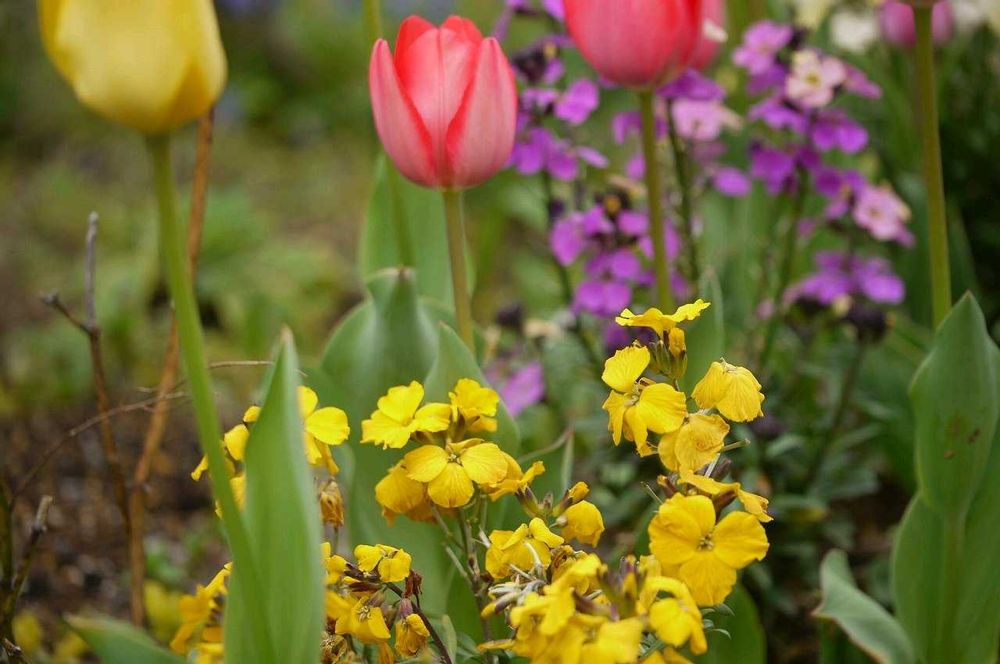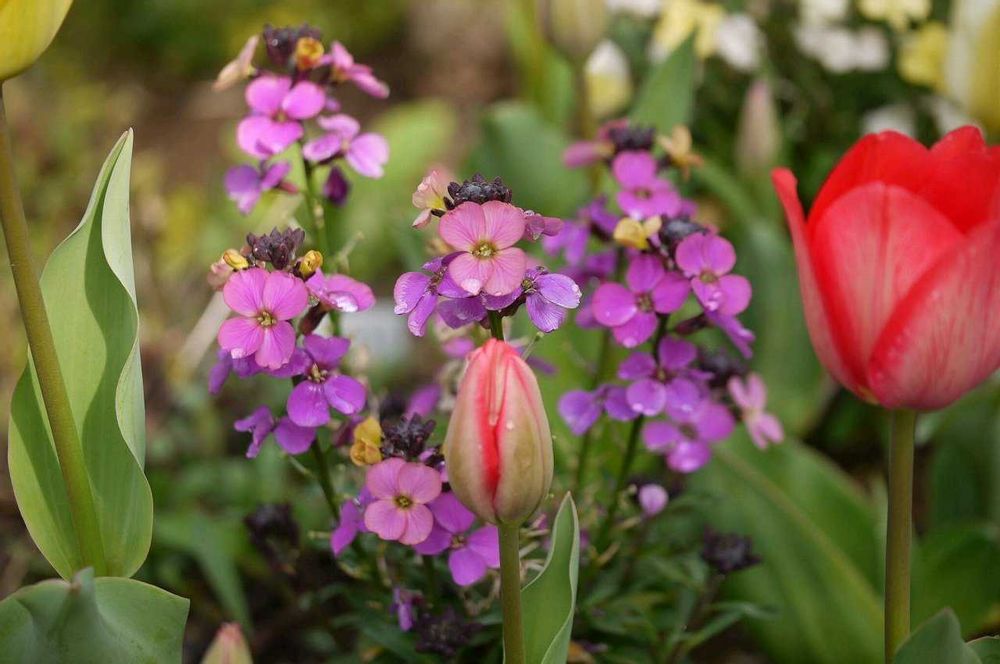 アブラナ科だから、長期開花は望めそうも無いけど、チューリップと共に華やかです😍