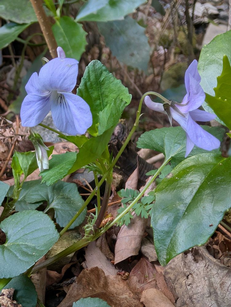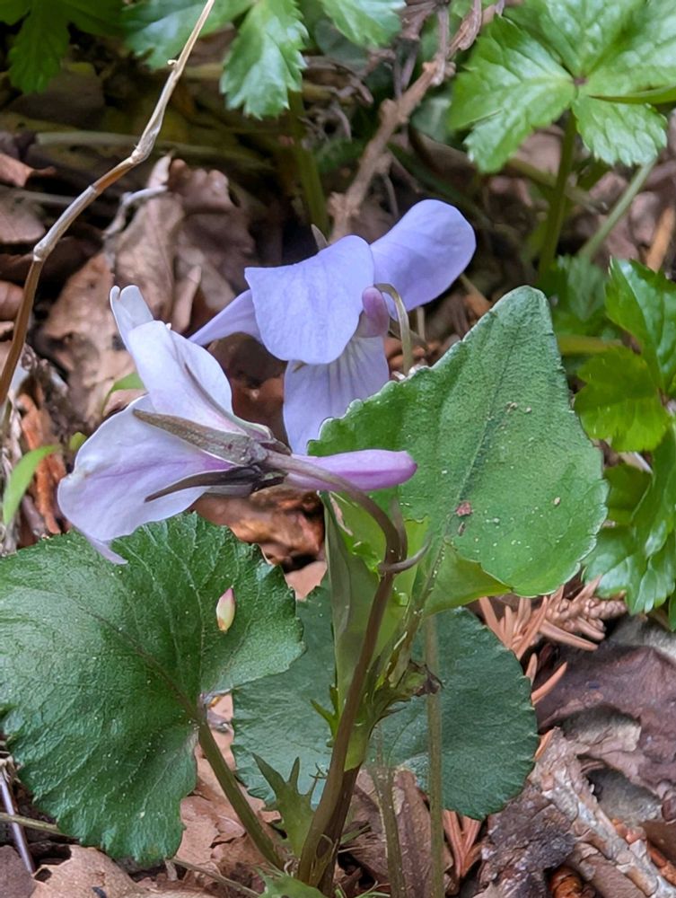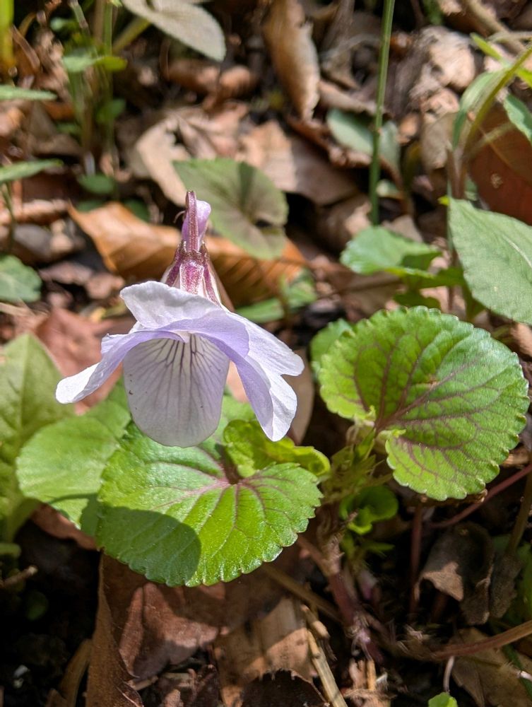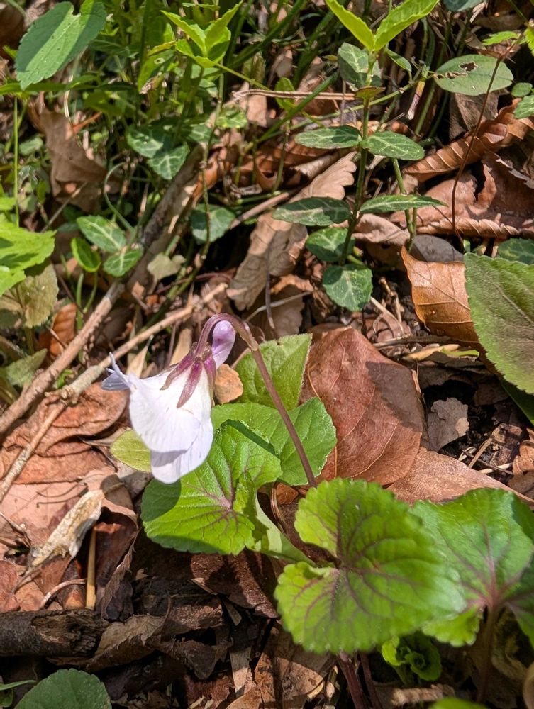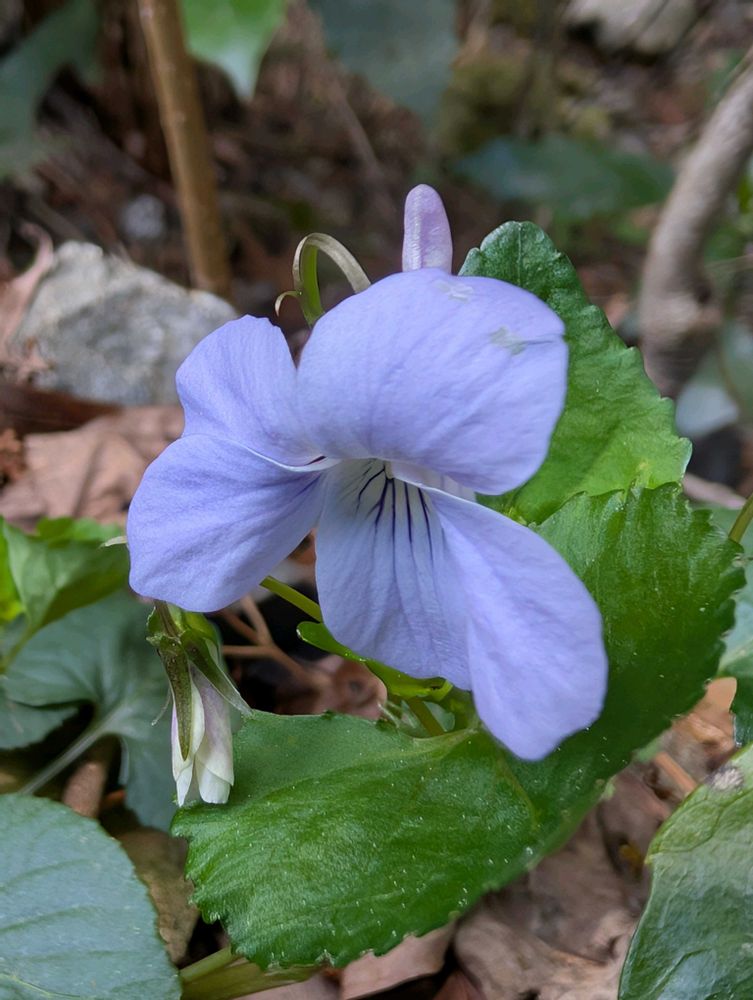 タチツボスミレのようですが、この葉っぱに葉脈に赤く筋が入ると、アカフタチツボスミレです👍️