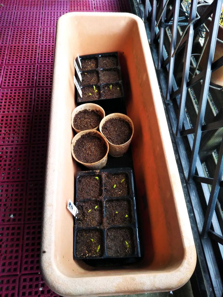 <地道投稿>夕方五時のチャイムは📢🎶カラスと一緒に帰りましょ🎶😄昨年鉢がきゅうくつになり、花壇に植え替えした1️⃣「岩やつで タンチョウソウ」2️⃣「アマドコロ」3️⃣「ヤマオダマキ」は伸び伸びしてます😂4️⃣「スカシユリ」🙏🙏用に植えました5️⃣プランターの中で育てます。種からの1キヌサヤ(6)スナックえんどう(2)は可愛い芽が覗いてます。オクラ(2)ピーマン(2)早すぎたかな😓紙丸パックは栗かぼちゃ(3)こちらも動きなし😓育てば充分家計が助かります。