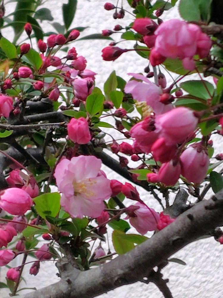 今は蕾も開花して、ピンク一色になっているけれど、私もマユさんと同じように、1枚目のような時の姿が一番好きなので、投稿させていただきました😄