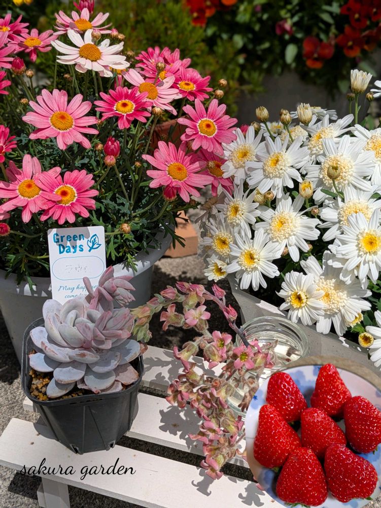 いちごの日🍓だ〜って 嬉しかった〜ꉂ 🤭 マーガレットも今年は、開花遅れているような気がするね♬.*゚