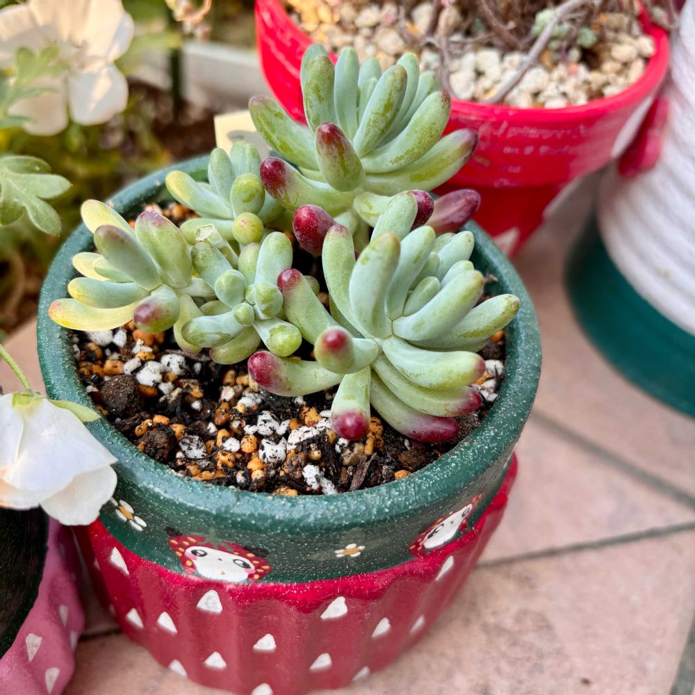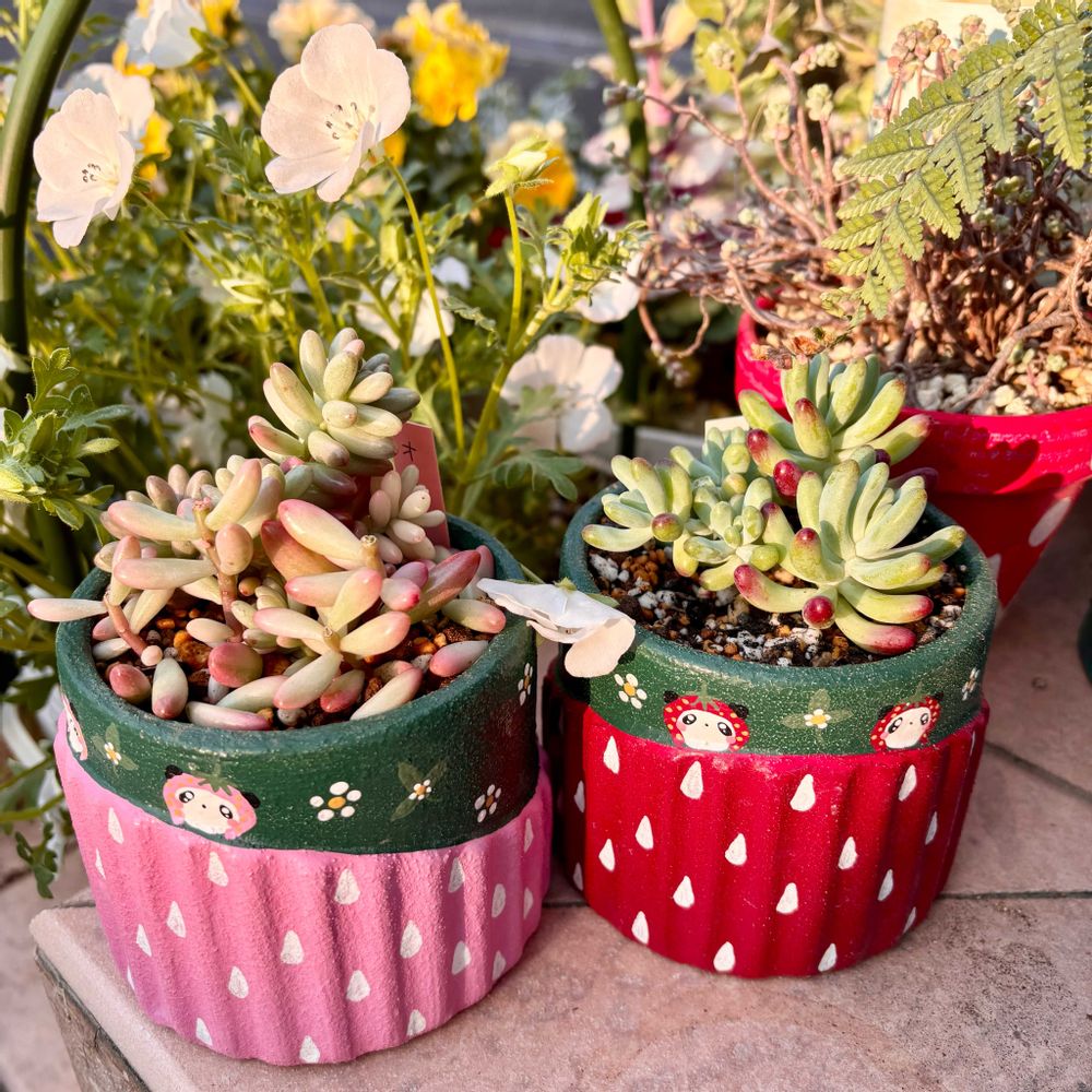 ミケパンちゃんのいちご鉢にお迎えしたまま放置していたオーロラと乙女心を植えました💕